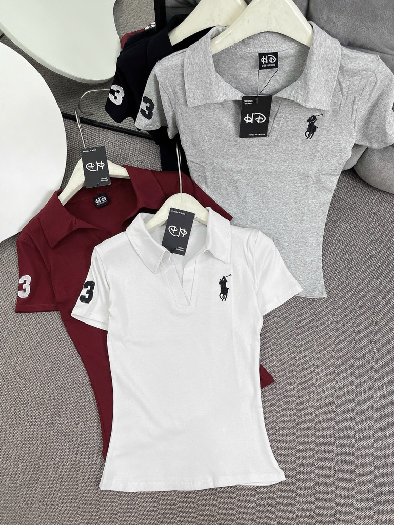 Áo thun cổ bẻ thêu ngựa - Form vừa
