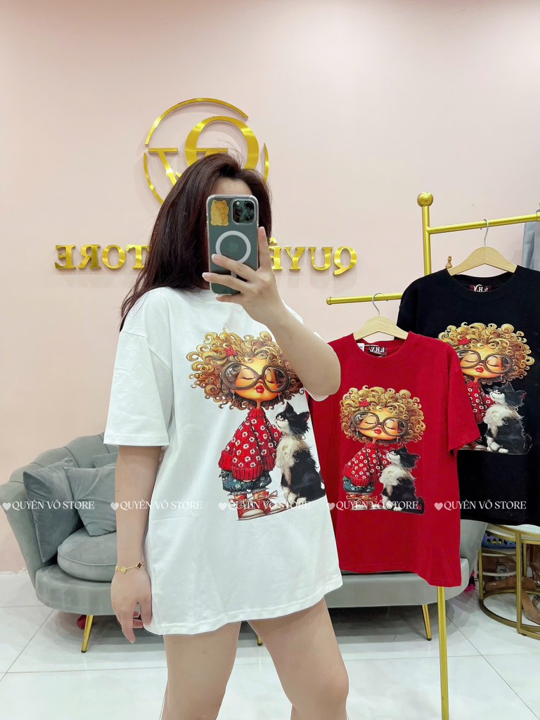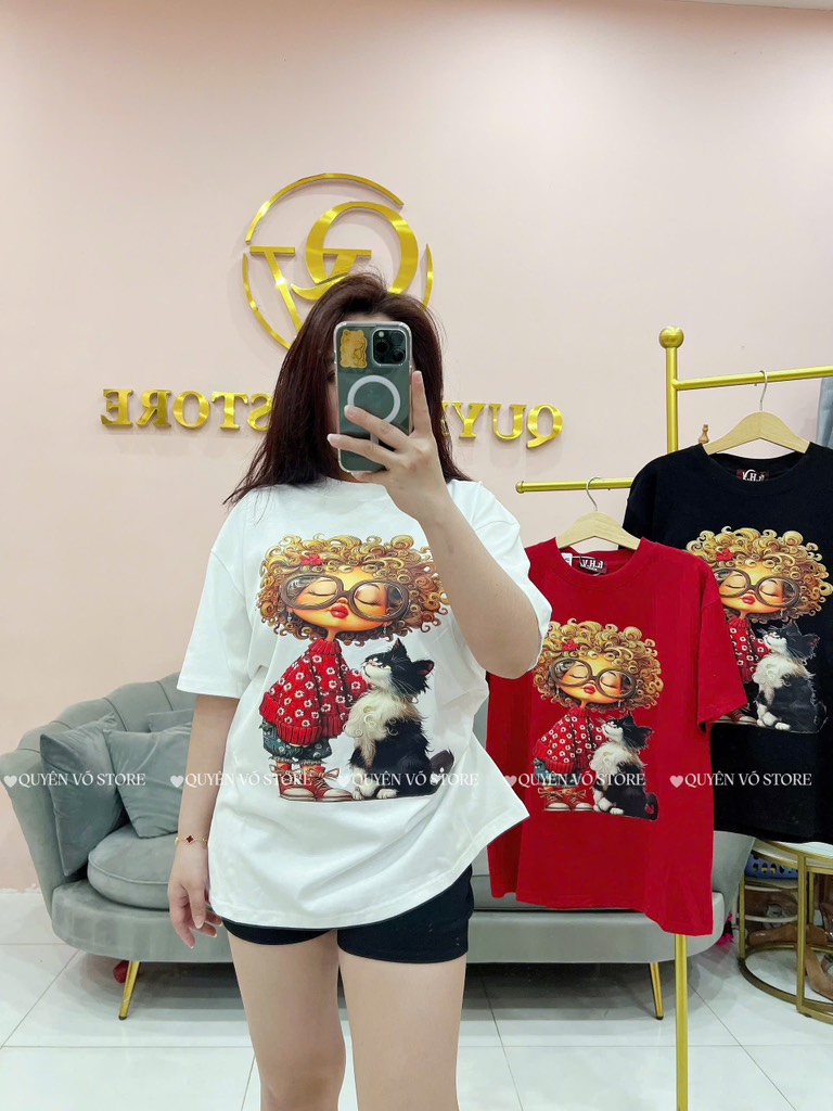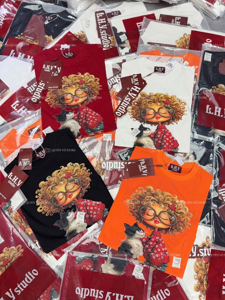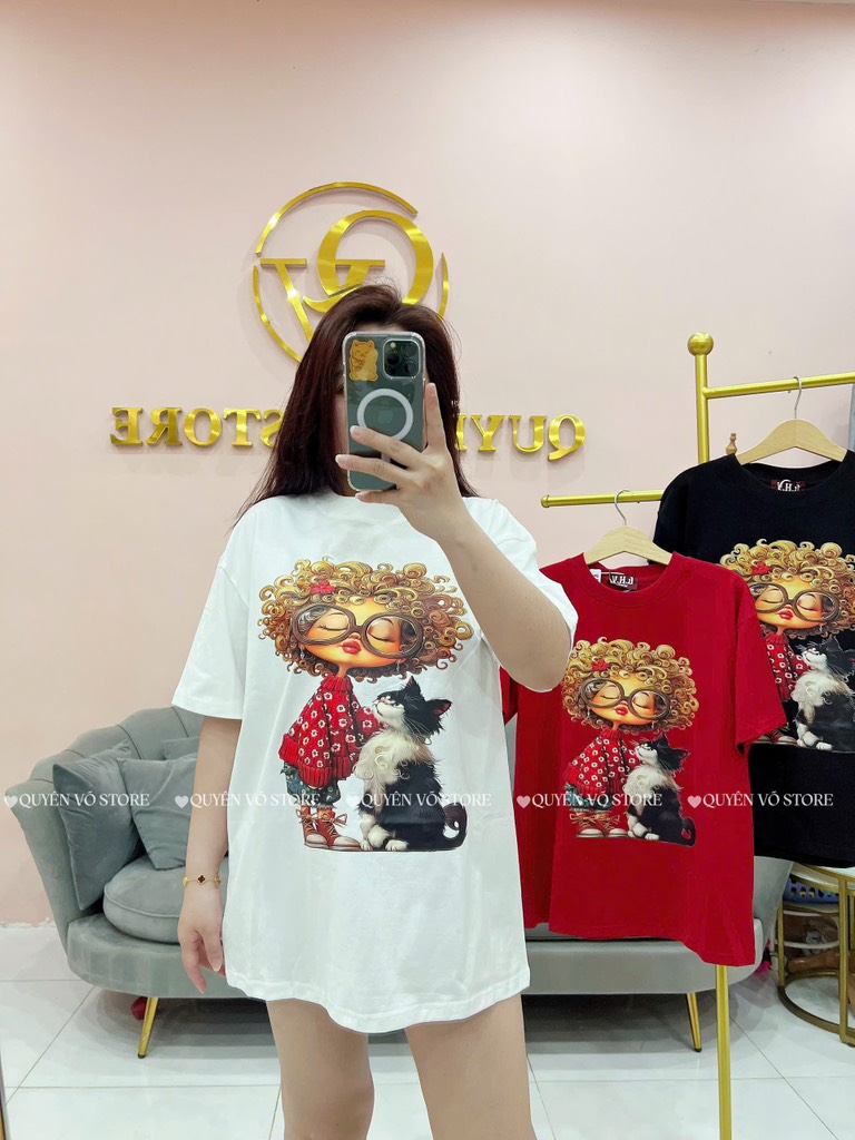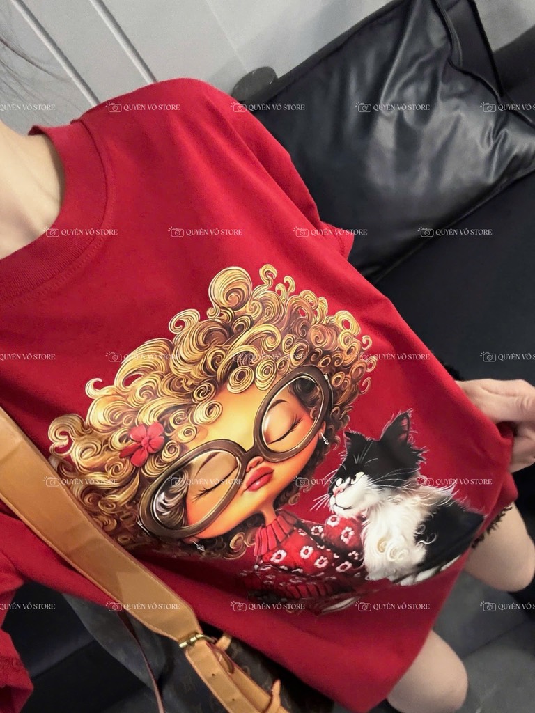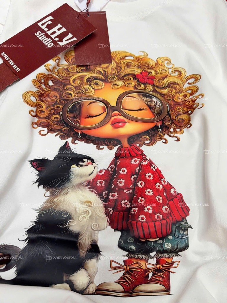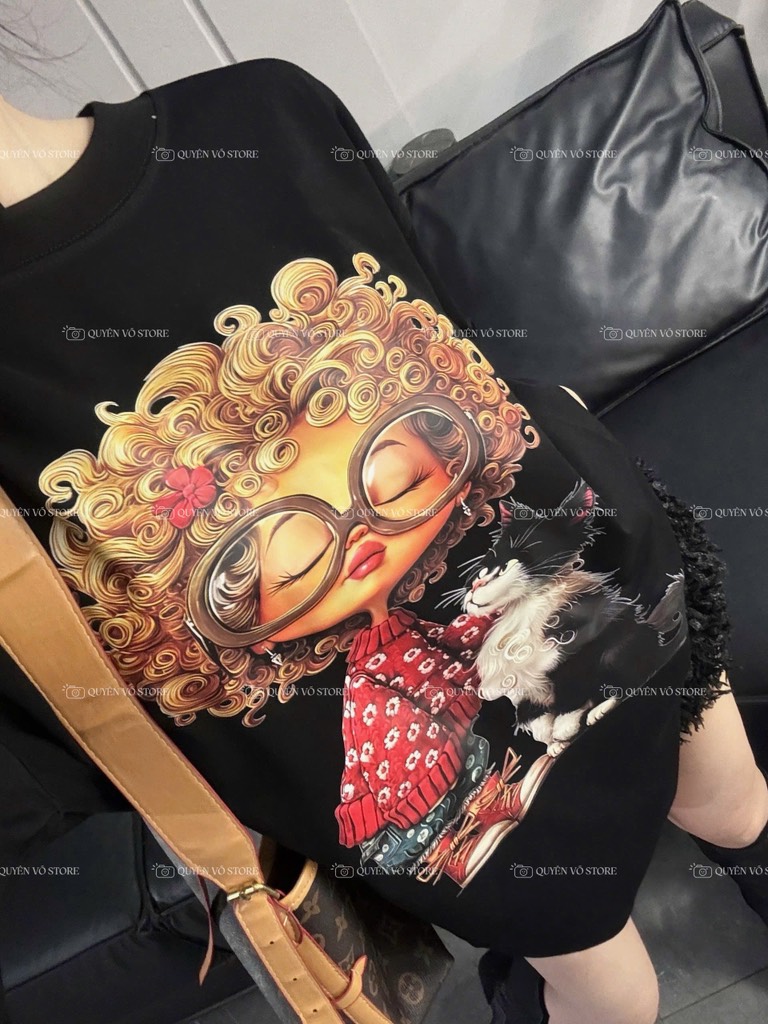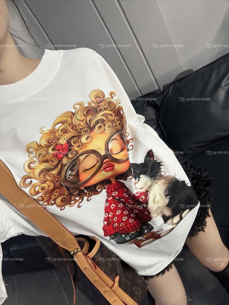 Áo thun cô gái tóc xù mèo