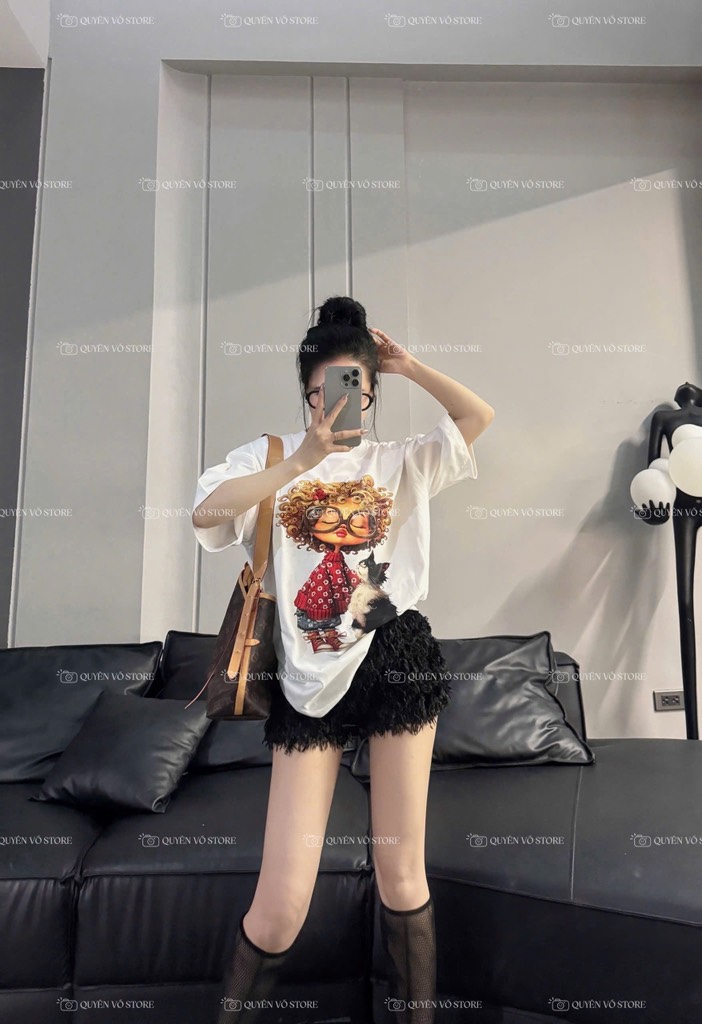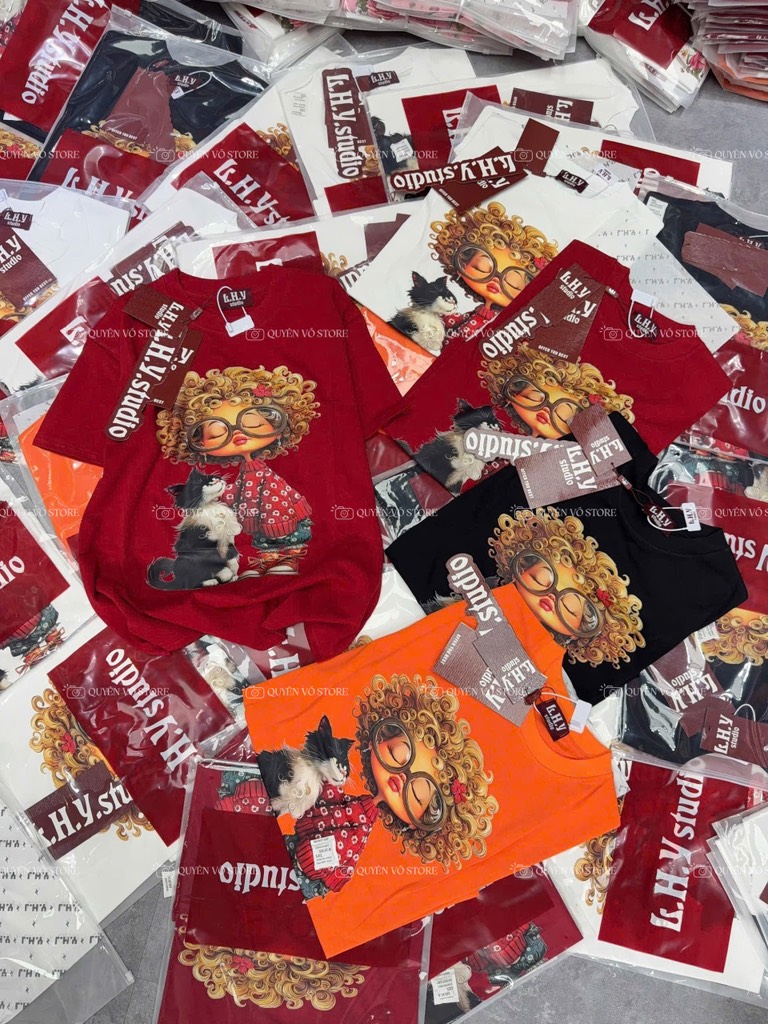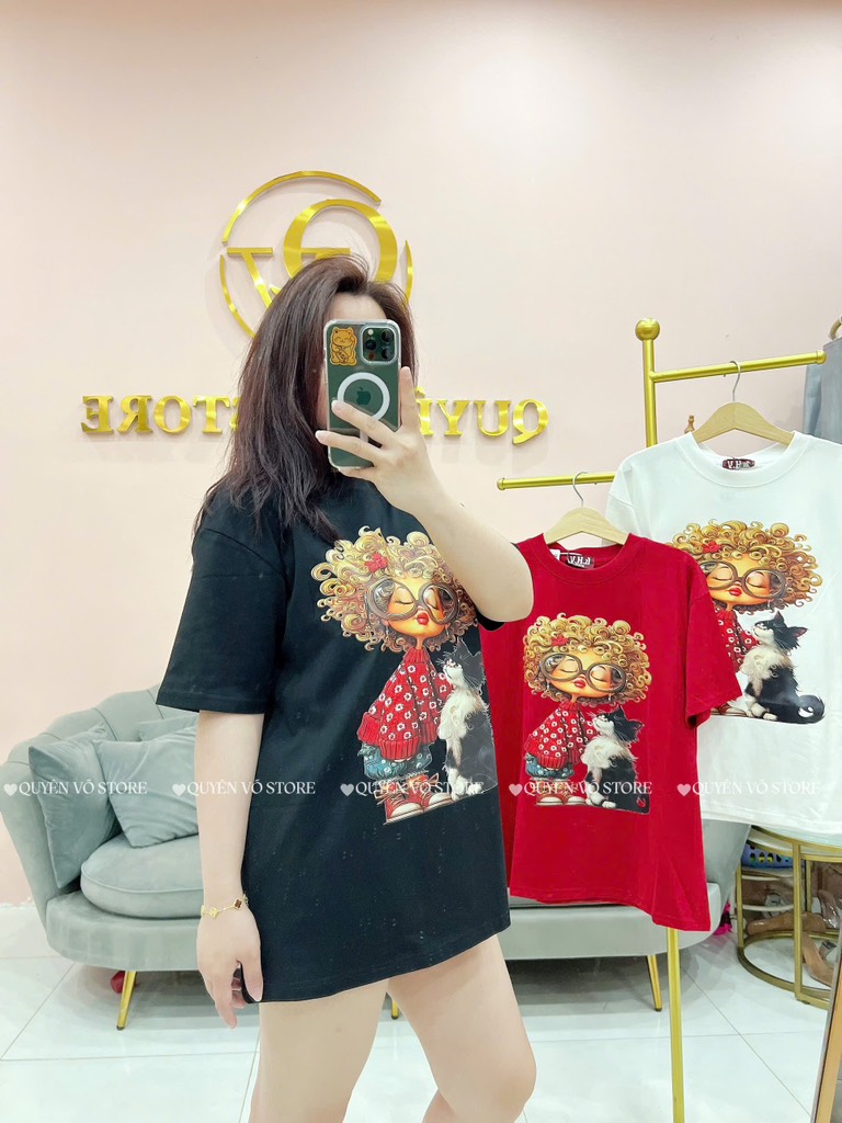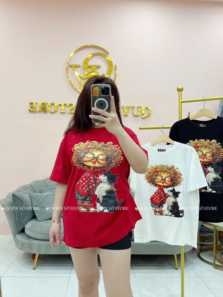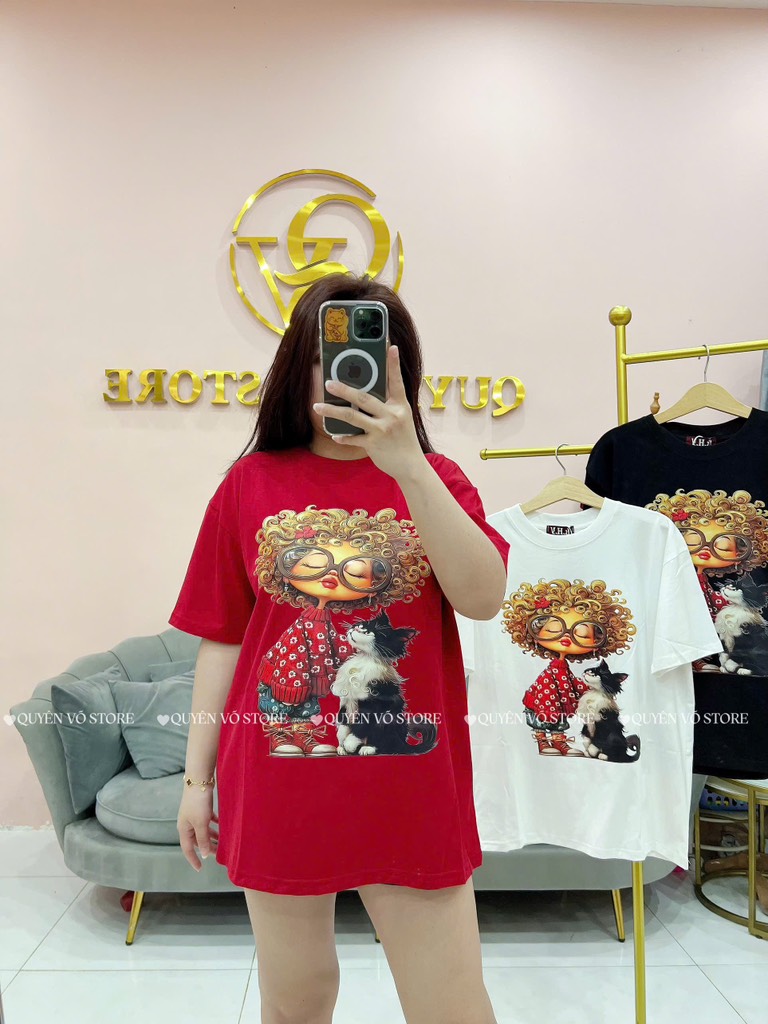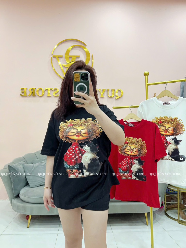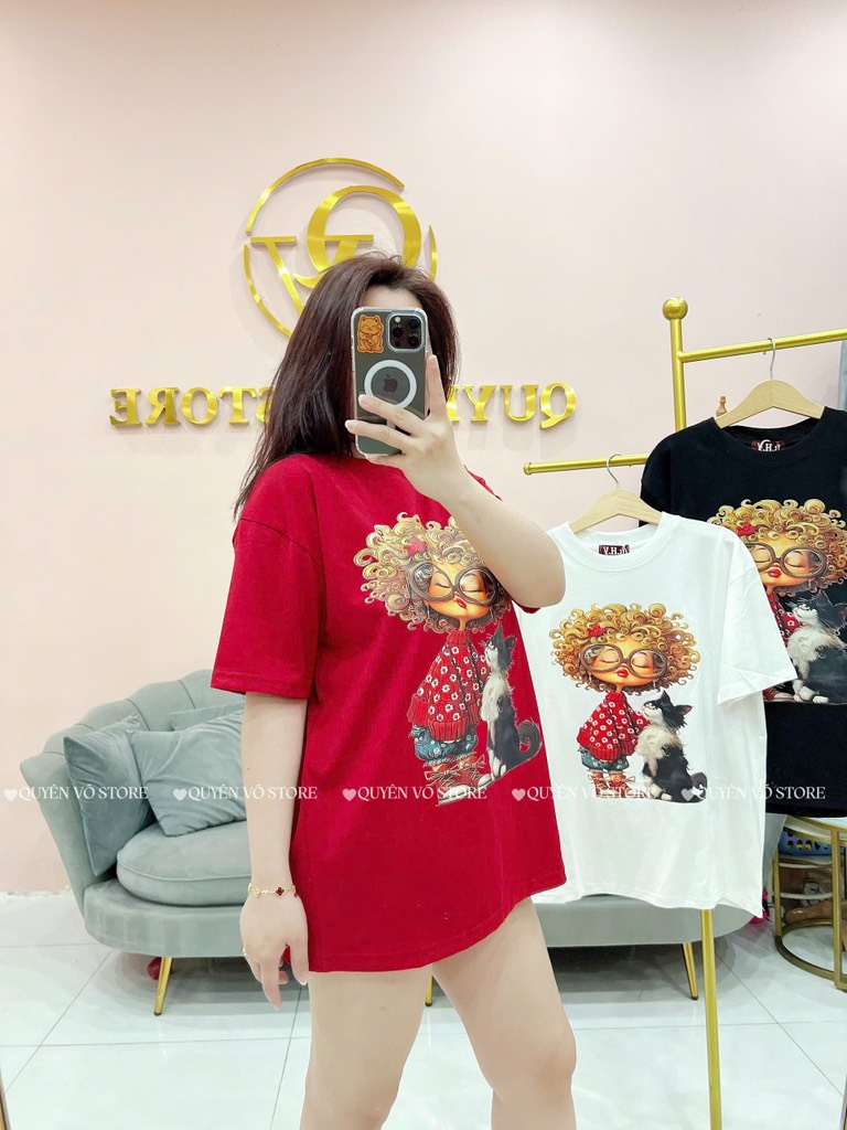 Áo thun cô gái tóc xù mèo