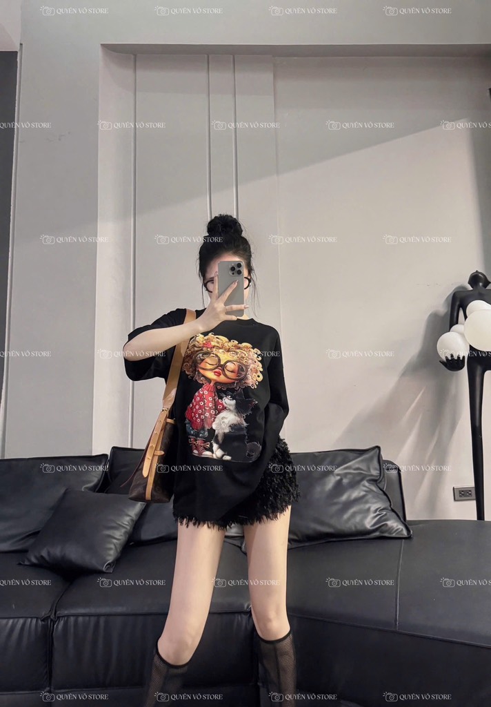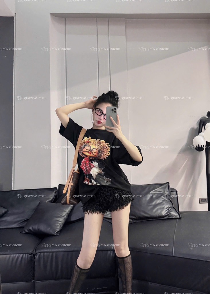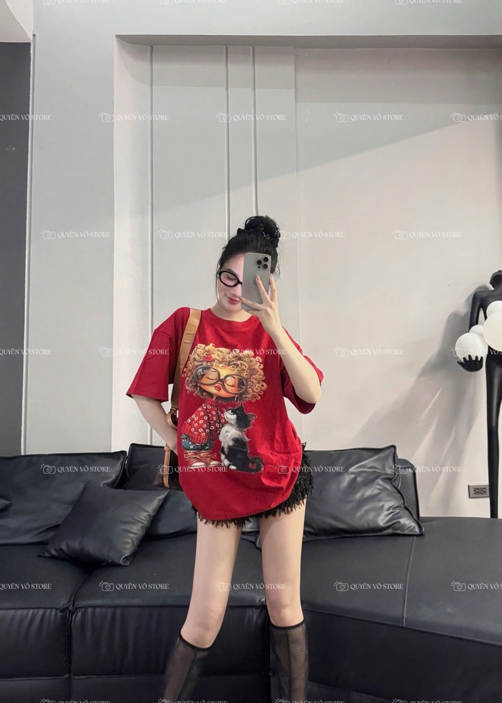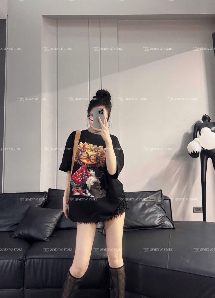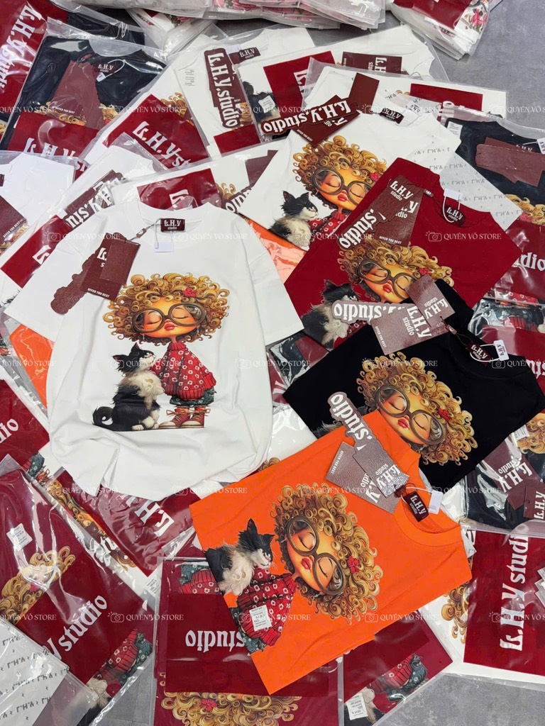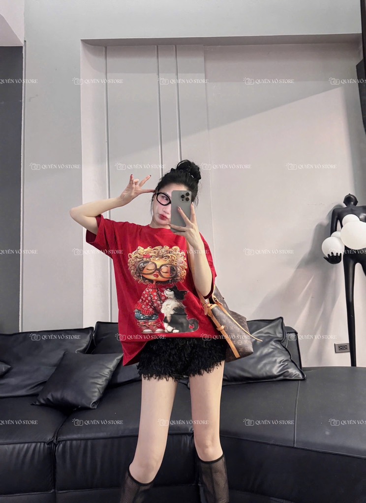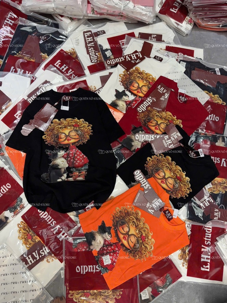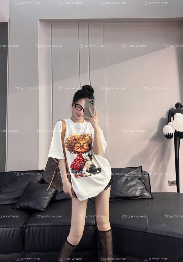 Áo thun cô gái tóc xù mèo