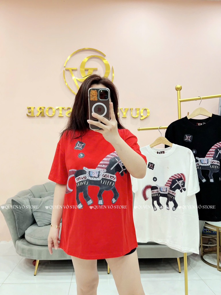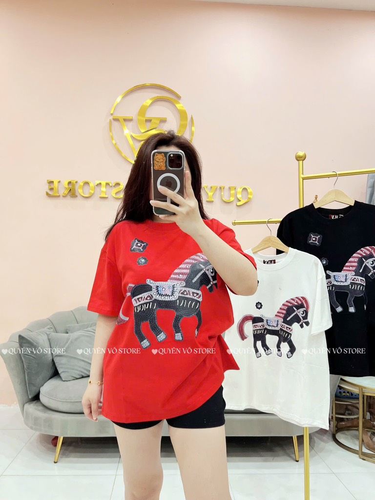 Set áo đỏ cổ V bèo nhíu x chân váy bi đen