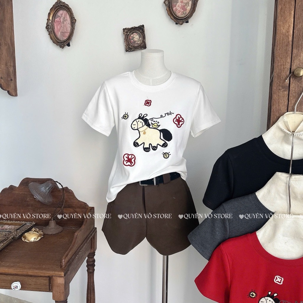 Set áo đỏ cổ V bèo nhíu x chân váy bi đen