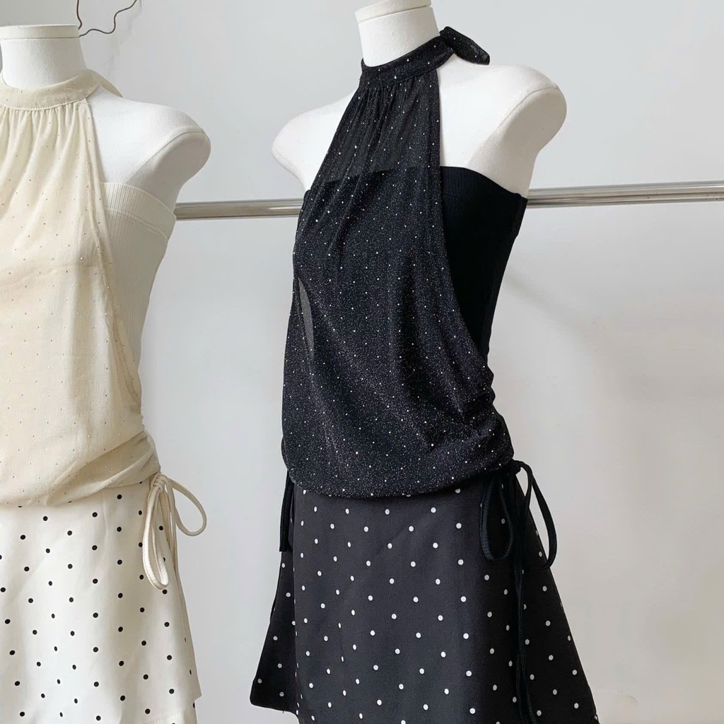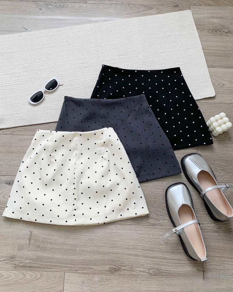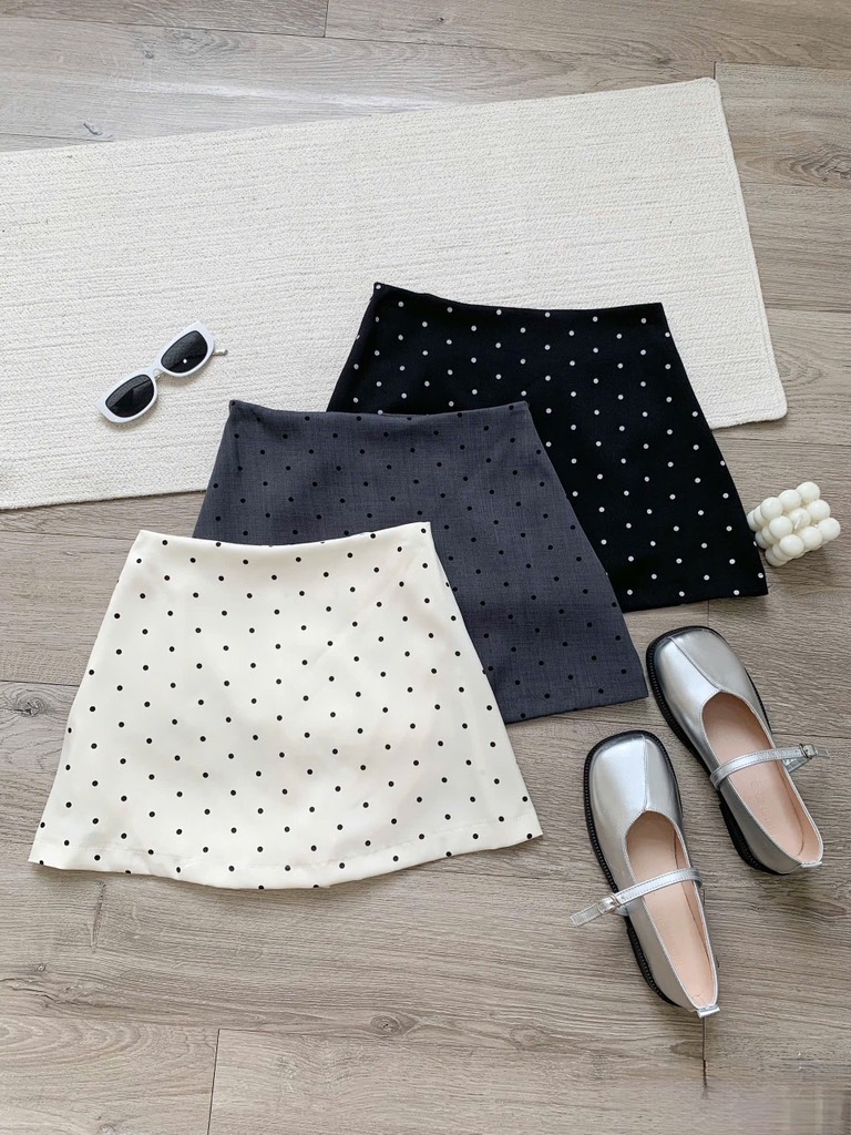 Chân váy chấm bi dáng A - Đen
