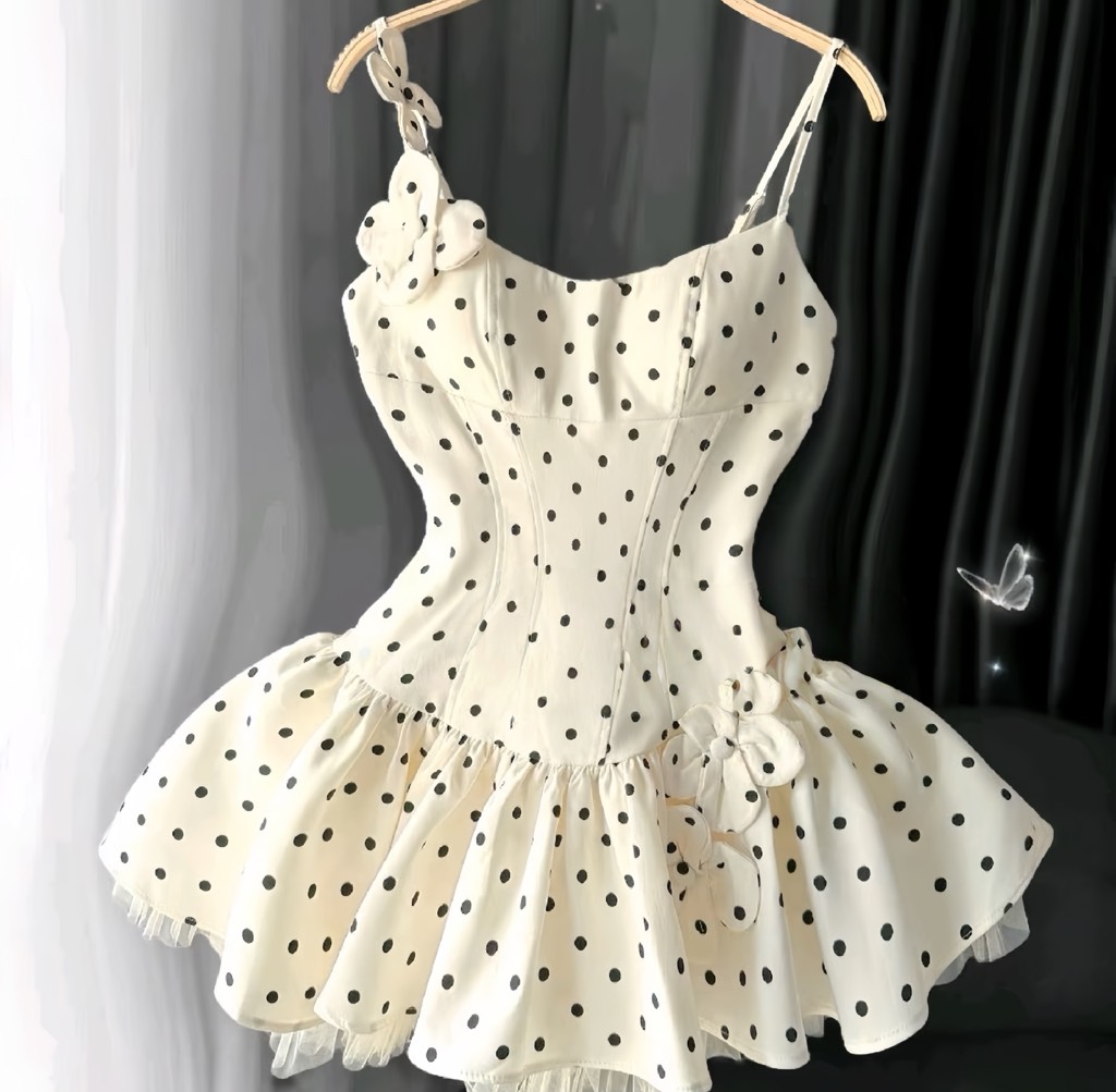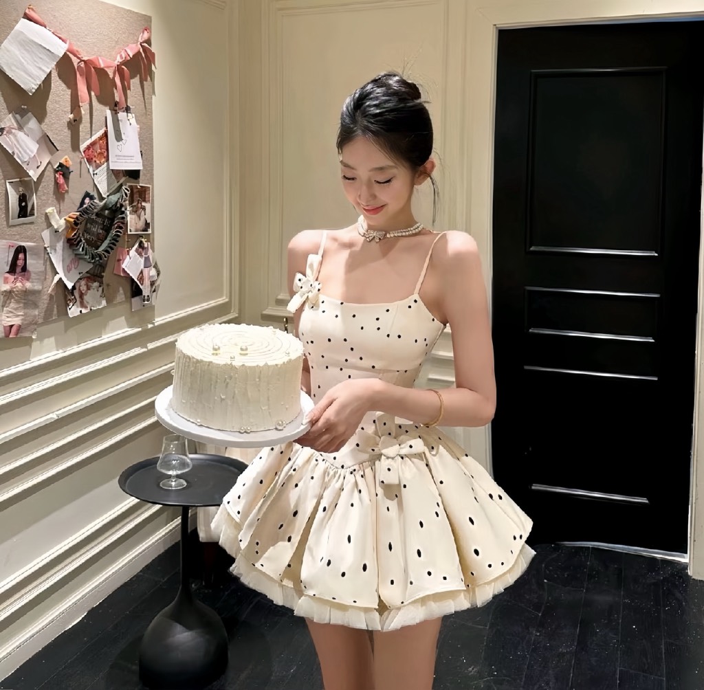 Đầm 2 dây xoè chấm bi