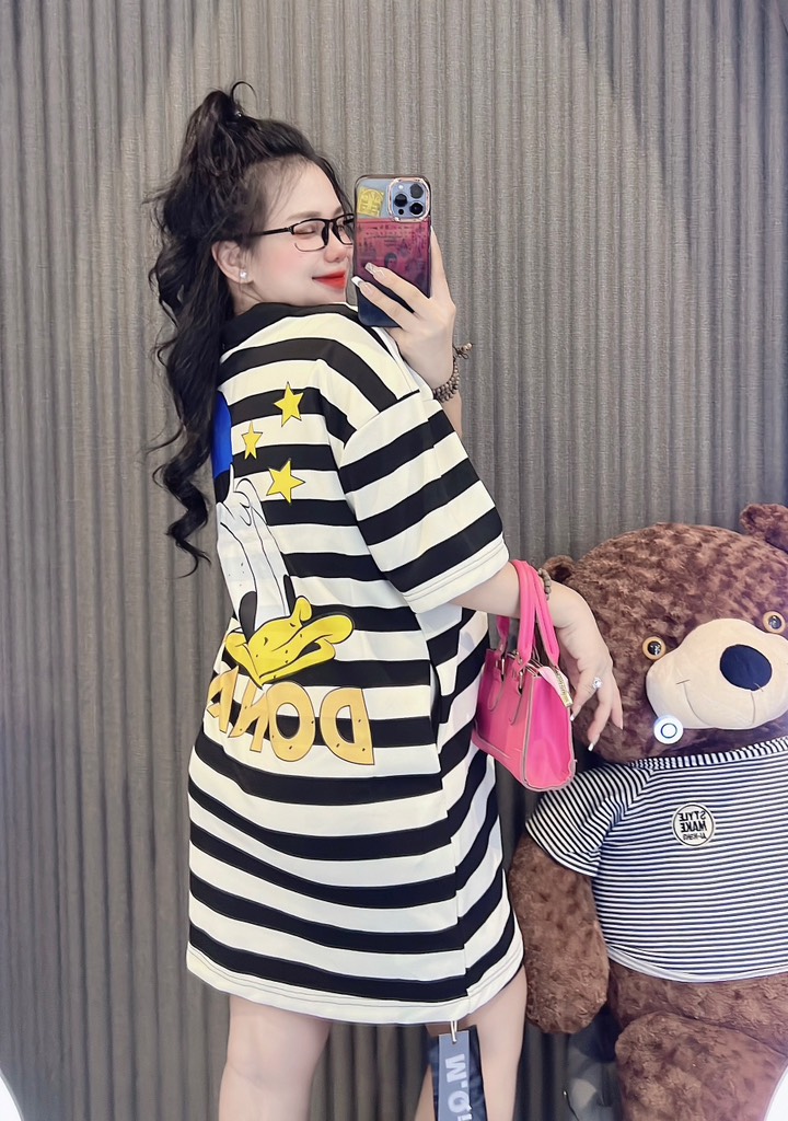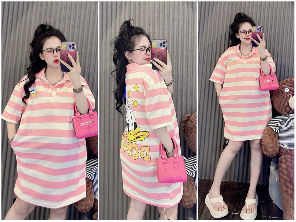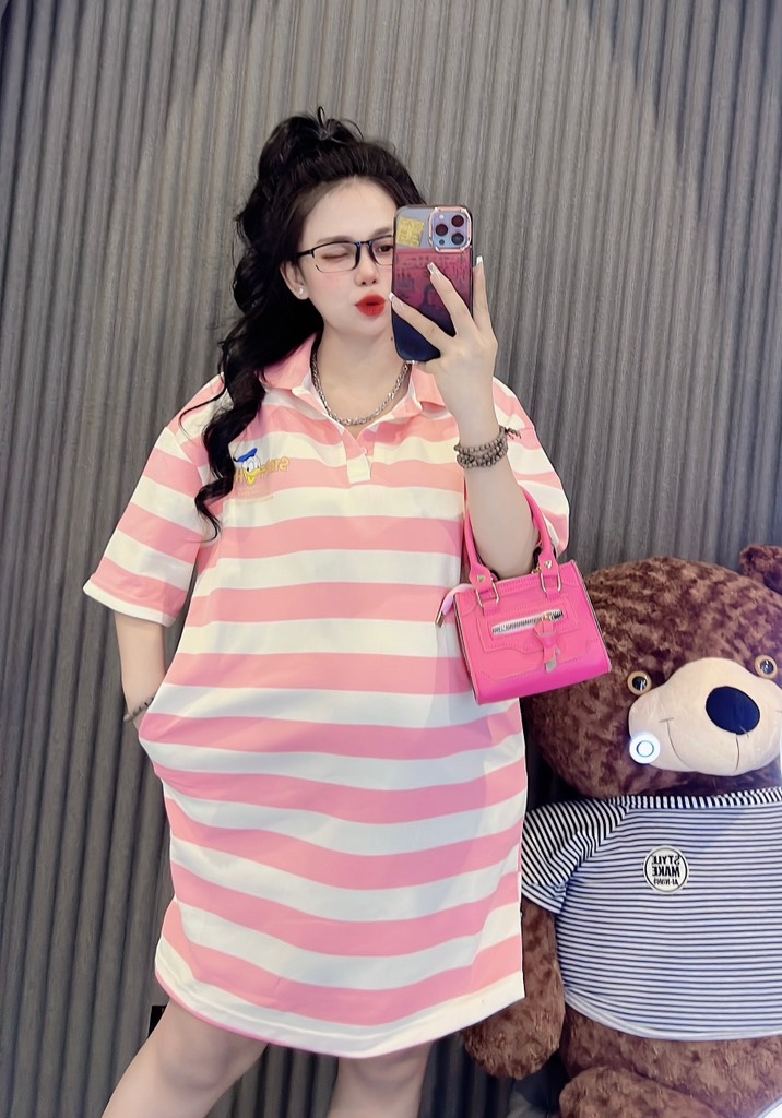 Đầm thun sọc cổ sơ mi