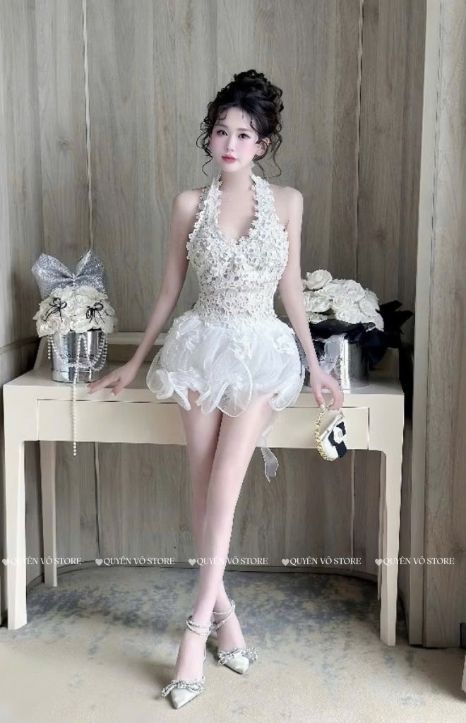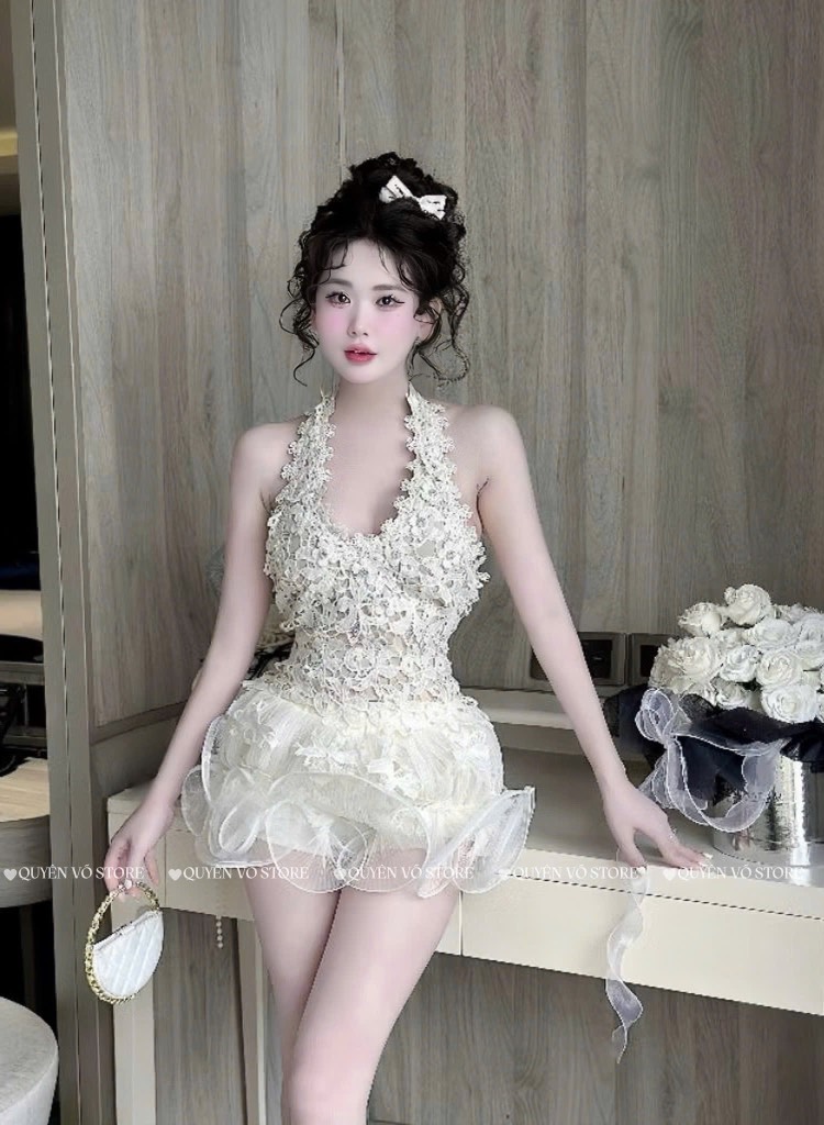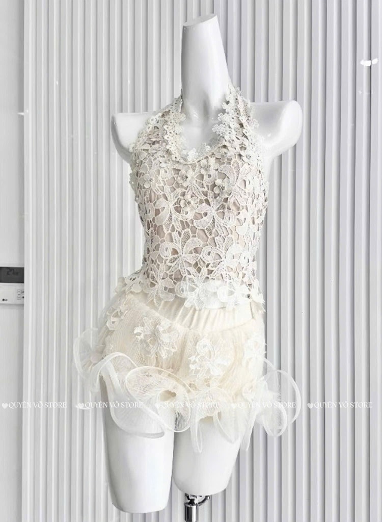 Set áo yếm ren chân váy sóng